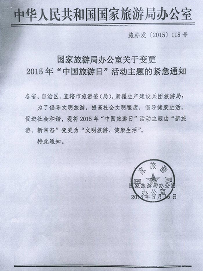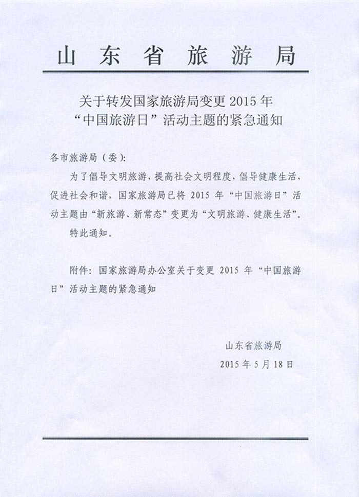 关于转发国家旅游局变更2015年“中国旅游日”活动主题的紧急通知(2015年05月18日)