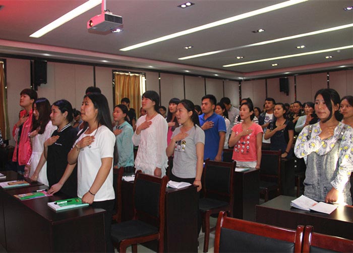 5月20日下午,119名新导游人员在2015日照市导游人员岗前培训班上诚信宣誓,并在“文明旅游,从我做起”横幅上郑重签下自己的名字,日照市旅游局副局长杨家坤参与宣誓活动。