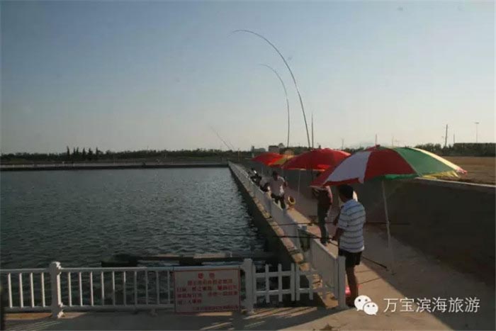 垂钓园是日照沿海地区面积最大、养殖品种最多、服务设施最全、建设规划标准最高的垂钓园,景区垂钓园面积60亩 水深约2米,池中养殖鲈鱼、黑鲷等十几个品种,且规格较大,垂钓园四周安装有安全护栏和警示牌,保证安全,工作人员会为您提供周到的服务,为游客讲解垂钓技巧,提供技术指导,让您乘兴而来满意而归。