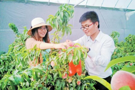 6月2日,东港区河山镇沁园春风景区,游客正在采摘园内进行采摘。 当日,记者在现场看到,风景区内冬日的滑雪场变身成夏天的滑草场、滑水场。同时,该景区内还增加了水上漂流等娱乐项目,大棚里熟透的蜜桃、油桃也吸引了大批游客前来采摘。 据了解,河山镇按照“旅游活镇”的发展目标,高标准定位、高水平开发,让游客享受到便捷安全、多彩快乐的旅游之美。