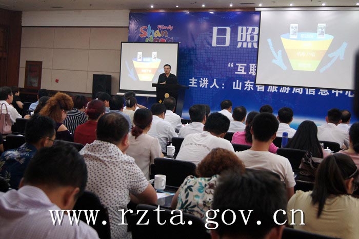 为加快我市旅游信息化建设,打造一支旅游创意营销队伍,应对“互联网+”时代的到来,19日下午,日照旅游大讲堂第一讲—日照市“互联网+旅游网络营销”开讲,市旅游局特邀山东省旅游局信息中心主任闫向军主讲“互联网+旅游网络营销”新思维,市旅游局全体人员、各区县旅游局局长、分管局长及市场科人员、日照市旅行社、旅游饭店、旅游景区(点)总经理和网络营销人员近300人参加了会议,日照市旅游局副局长赵志超主持会议。