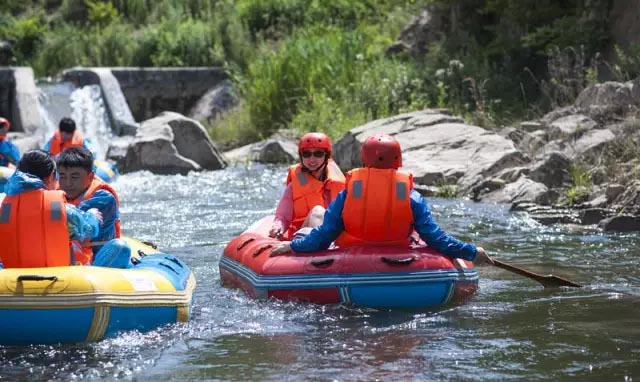峡谷漂流位于九仙山风景区内,自宣王沟起至毛家河为止,河道全长3000米,