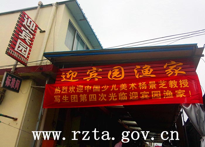 “有朋自远方来,不亦说乎”。7月19日下午,任家台迎宾园渔家乐内拉横幅、整理客房、做海鲜大餐——里里外外布置一新,用最大热情迎接中国少儿美术杨景芝教授写生团的到来。