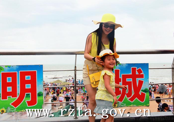 图/在日照灯塔风景区,家长孩子与大海拍照留念!