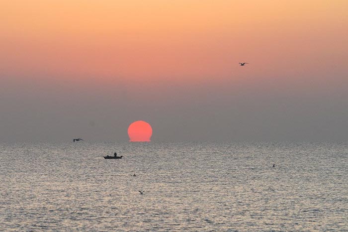↑清晨,水杉带着雨露,海浪卷席着沙滩,回首,恰遇第一缕光!