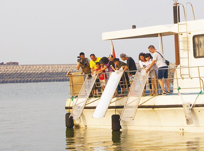 在岚山阳光海洋牧场,节目嘉宾与工作人员一行人登船游海,孩子与父母共同放生鱼苗,体验阳光放生的乐趣。牧场致力于整合旅游资源,挖掘阳光牧场景区旅游内涵,着力开发代表世界旅游未来发展趋势的体验,发不同内涵、不同层面、不同文化的带有阳光牧场特色的多种旅牧场游产品,建立旅游新模式,让景区的海洋资源和生态环境切实得到保护和永续利用,着力打造一个富有区域特色的“海上生态乐园。”