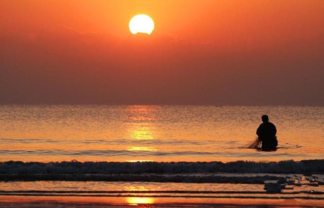 【秋的收获撒网捕鱼 期盼大海满满的赠予】