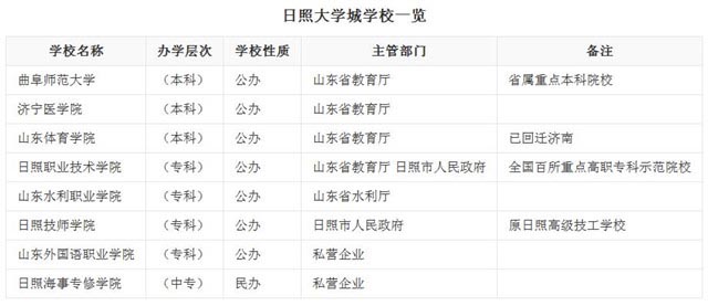 “日照大学”一览表