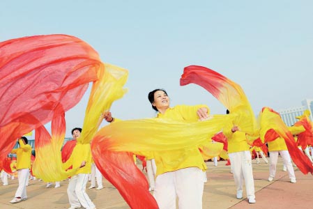参加庆“九九”重阳节健康成果展演活动的人员在展演。 当日,由日照市体育局、市老年体协主办的庆“九九”重阳节健康成果展演活动在日照市人民广场举行。 本次展演活动共有来自社会各界1038名中老年人参加,进行了老年体育特色项目、创新项目、表演项目三个大项的健身成果展示,共计25个表演节目。 近年来,日照市通过持续加大全民健身工程建设力度,广泛开展全民健身活动,不断健全全市公共体育网络,鼓励广大老年人踊跃参加各类健身活动,激发更多老年人的健身积极性。