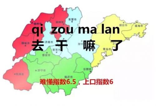 青岛话属于胶辽官话,其特征是舌音比较重。普通话的声调也被削减不少。基本上在某个程度上,要把普通话转成了青岛话,只需把普通话的声调改一改,把第四声保持不变。说青岛话的窍门,就8个字:“一三互换,二四归四”。这样说来,排到第六名我也服!!