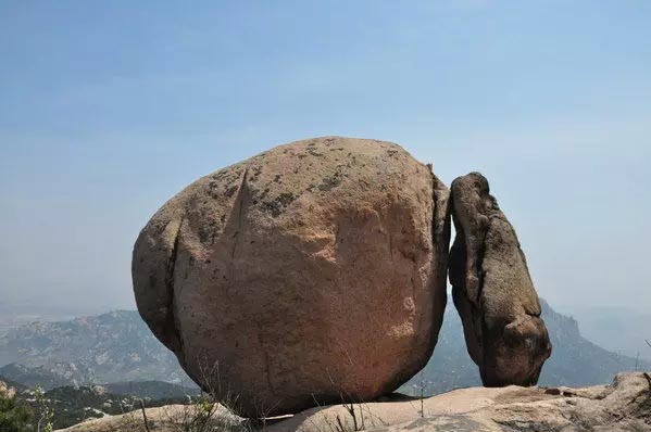 五莲山宝葫芦石,两块巨石紧密相连,浑然一体,构成了宝葫芦的形状,葫芦嘴清晰可见,看到这里,除了赞叹,真的没有其他话说哇。
