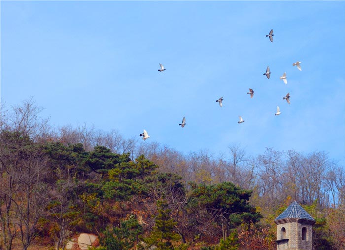 大青山以其独有的姿态,从春末到初秋,静静地卧在青枝绿叶中,浑然一体。只有等到秋末冬初,远树浅深红,凉风凋落叶,它才现了出来,看得清它柔美的身段和突起的骨骼。