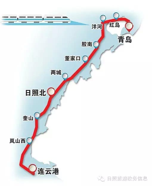 青日连快速铁路2014年9月开工,预计2018年建成,设计标准为国家I级,拟开通时速200公里的动车组,从青岛到日照仅需40分钟,从青岛到连云港仅需1个小时。其中日照设两城、日照北、奎山、岚山西4个站点。