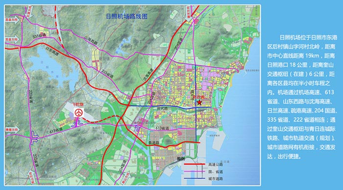 2、自日东高速公路到零点收费站→204国道或者经竹洞天方向→613省道→机场路→机场。
