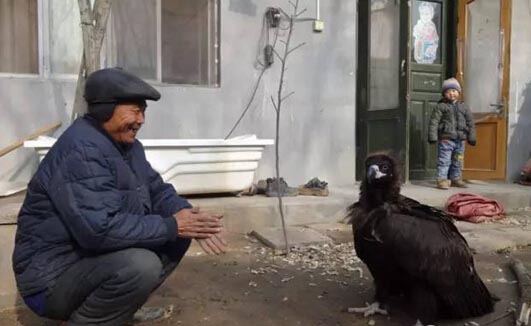 这只“巨鸟”身高有0.8米左右,展开翅膀体长近3米,通身黑褐色的羽毛,嘴巴尖而带钩,具有攻击性。不知是什么原因,抱回家的“巨鸟”一直在吐,赵学臣对其精心护养并及时上报有关部门。目前,这只“巨鸟”已被县林业局带走。据网上查证,该“巨鸟”酷似国家二级保护动物——鹫类。
