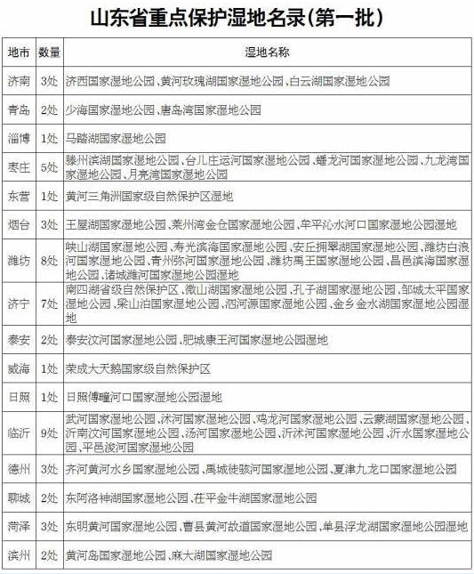 山东省53处湿地列入重点保护名录 日照1处入选(2016年01月16日)