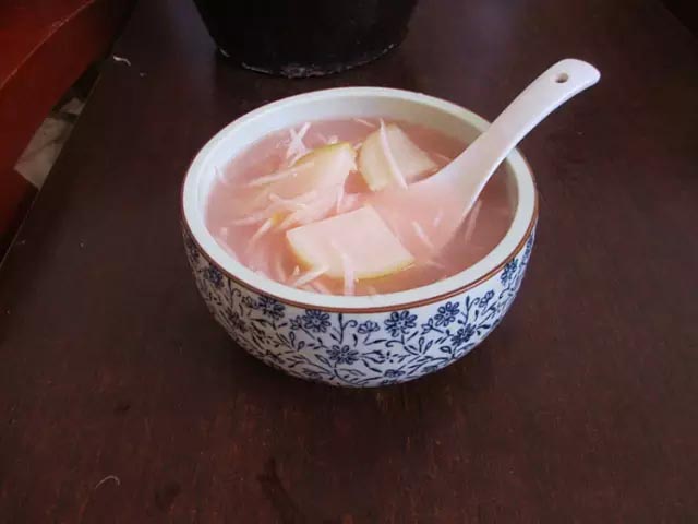 年夜饭照例是特别丰盛的。大年初几不动刀,大家歇工,所以年菜事实上即是大锅菜。大锅的炖肉,加上粉丝是一味,加上蘑菇又是一味;大锅的炖鸡,加上冬笋是一味,加上番薯又是一味,都放在特大号的锅、罐子、盆子里,此后随取随吃,大概历十余日不得罄,事实上是天天打扫剩菜。