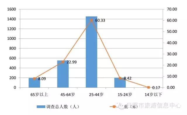 以上数据以国内游客为样本 2、25-44岁的游客最多