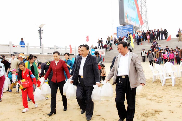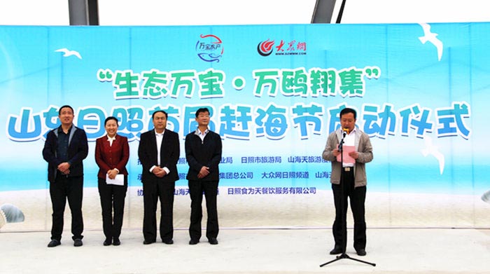 23日,“生态万宝 万鸥翔集”日照首届赶海节正式拉开帷幕,日照市山海天旅游度假区党工委副书记、管委会主任王洪彩,日照市旅游局副局长刘庆仁出席启动仪式并致辞,千余名网友齐聚万宝滨海风景区上演赶海比赛,争夺“赶海王”桂冠。