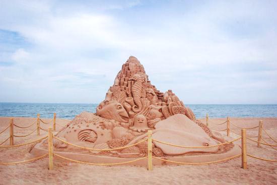 据了解,改造升级后的日照万平口景区将在6月1日正式开门迎客,此次沙雕艺术品展览作为万平口新增四十个娱乐项目之一,将持续到十月份左右,为绚丽的夏日海滨增添了一份浓浓的艺术气息。