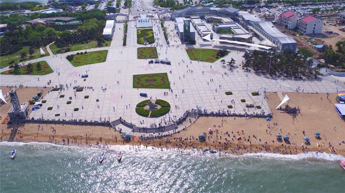 因广场西侧的彩虹桥而得名。彩虹广场,宽阔平坦,是游客观赏海景和游玩的佳选。广场两旁设有纪念品商店,广场内新增冲洗淋浴公厕1处,4个造型奇特的水滴建筑是提供冲淋、公厕服务的。广场北侧有一条蜿蜒的木栈道,两侧有鲜花绿植还有小木桌、椅子,供游人观海、休息。