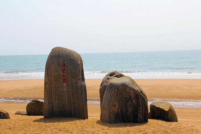 日照以“蓝天碧海金沙滩”称著。日照的海岸线长168.5公里,其中像这样的优质沙滩有64公里。这里的沙细、水清,是中国乃至亚欧大陆最宽阔平坦、最洁净、最长的沙滩之一,也曾是全国沙滩排球巡回赛的日照赛场,更有十里金滩万平口,黄海明珠耀九州的美誉。
