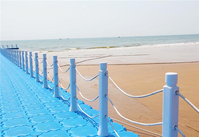 浮桥码头共建有3处,由50cm*50cm的PEC材质高分子材料组成,通过地锚固定在水中。最长的位于太公岛广场北侧、中间的位于扬帆广场南侧、最短的位于婚庆公园。主要用于游艇停靠和乘客登船。