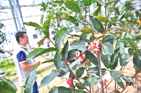 继续顺着小道往里走,各种热带植物在身边出现,大芭蕉、紫葡萄以及已结果实的莲雾等等,让人感觉置身热带。据工作人员介绍,这座占地8000㎡的太空农业科技馆。被分为太空农业展示区、热带植物观光区、热带爬宠动物园三部分。