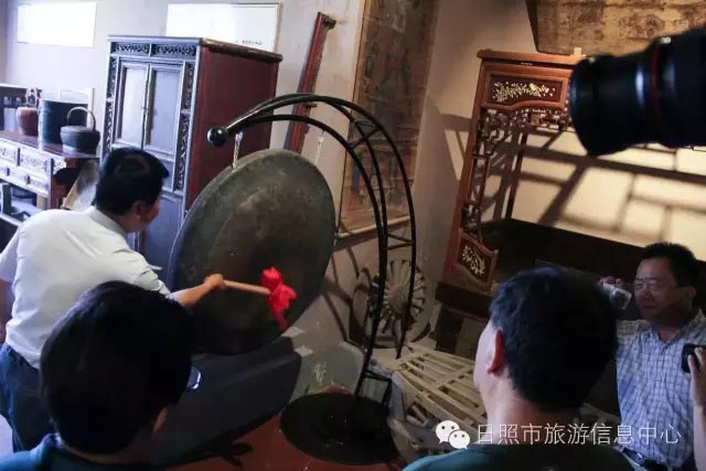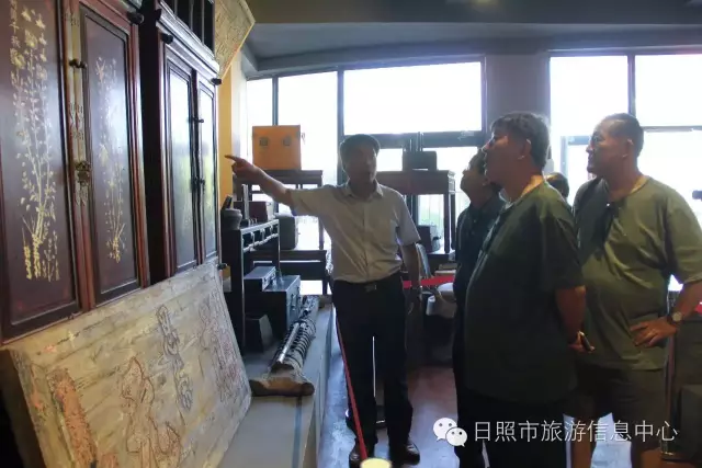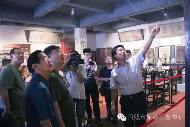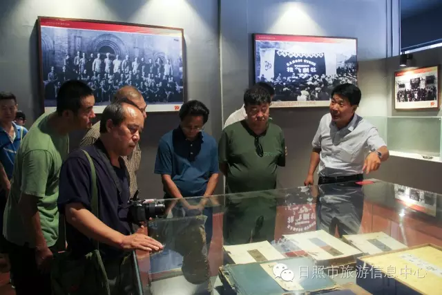 7月24日下午,革命家朱德元帅外孙刘康同志及其夫人左焕、张治中将军之孙张皓霆同志及其夫人陈金秀、黎玉之子黎小弟同志、牟宜之子牟广丰同志、陈昌之子陈龙狮同志、央视记者王旭东来到日照市抗日战争纪念馆考察。日照市旅游发展委员会副主任禚磊、日照市委党史研究室副主任尹德满陪同。日照市抗日战争纪念馆馆长刘军华做全程讲解。 刘馆长对到访的贵宾详细介绍馆内收藏品 刘馆长与到访来宾敲响状元锣,共同祝愿美好生活。 革命家后代对抗日战争纪念馆的红色教育给予肯定,并表述了自己独到的见解,提出了宝贵建议。 夏令营的小朋友们也在馆内参观 日照市抗日战争纪念馆内陈放的部分收藏品 来宾合影