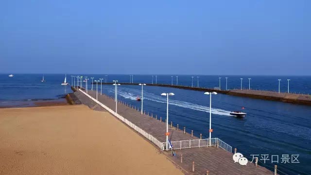 远处栈桥 有帆船、游艇远行,蓝色的海岸上漂浮着白色的船 这么美的色调 就在万平口。