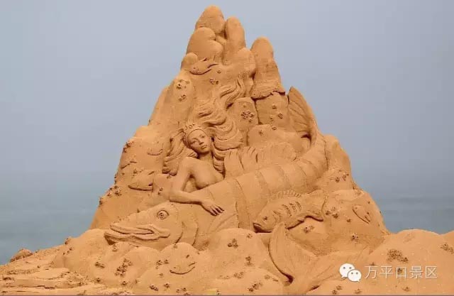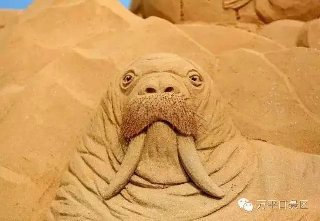 沙雕,这项“大地的艺术”,通过堆、挖、雕、掏等手段塑成各种造型,具有强烈的视觉冲击力,作品完成以后经过表面喷洒特制的胶水加固。此次沙雕艺术品展览作为万平口新增的娱乐项目之一,将持续到十月份左右。