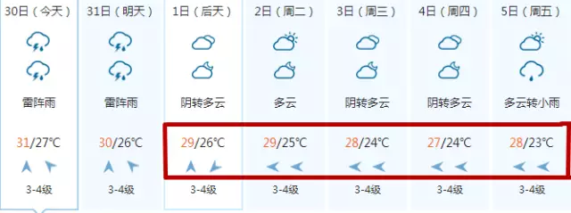 另外,受弱冷空气影响,自31日开始,我市气温将有所下降!