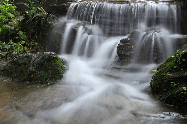 瀑流经过奇峰怪石的棱角时,飞花碎玉般乱溅,那溅着的水花,晶莹而多芒,微雨似的纷纷落着,袅袅婷婷,四处弥漫,行云流水,恍若仙境。
