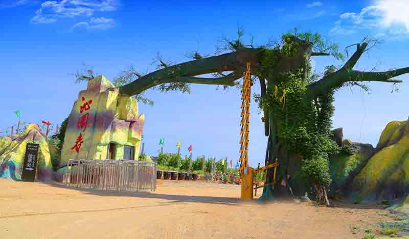 景区内亭台错落有致、小桥流水,片片地毯般的绿菌草坪,处处鲜花怒放。道路两旁,绿树成荫、花草瓜果飘香。1500平方米的自然水域,碧波荡漾的水面,为游客提供划船、垂钓、漂流等娱乐项目。