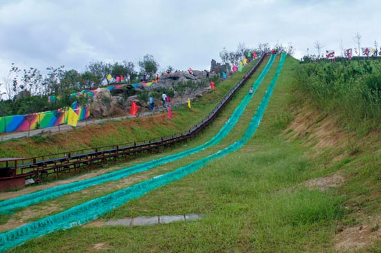 滑草是一项前卫运动,和滑雪一样能给运动者带来动感和刺激,滑草场滑道长约100米,落差达20米,让您在感受风一般速度的同时又能领略到大自然的美好。