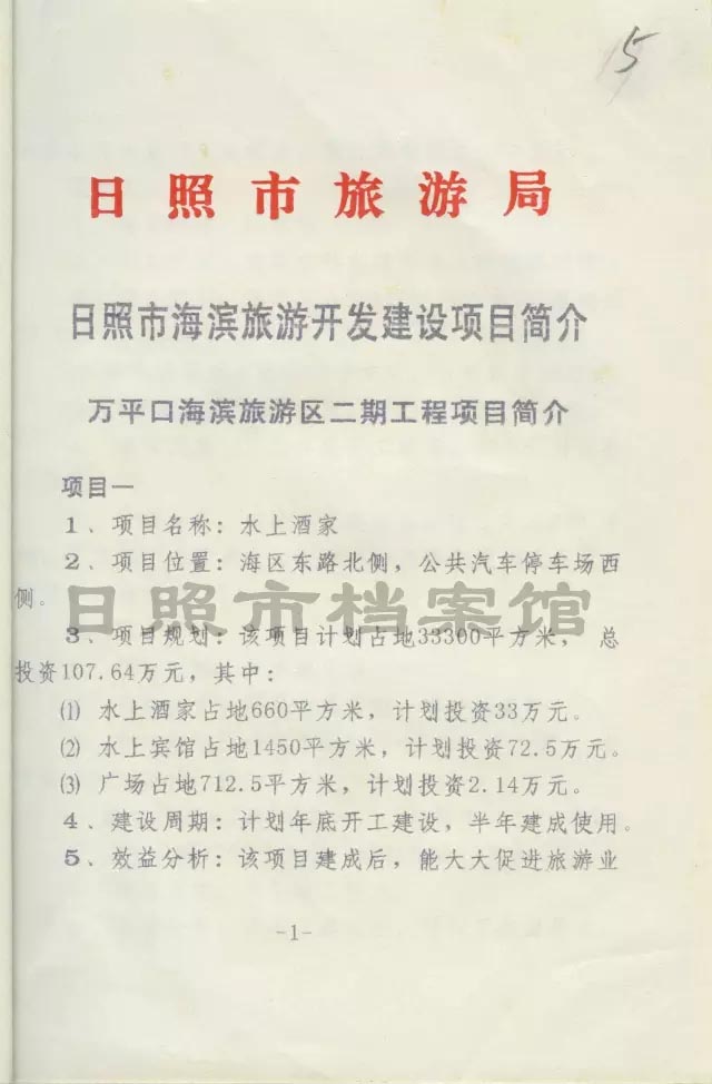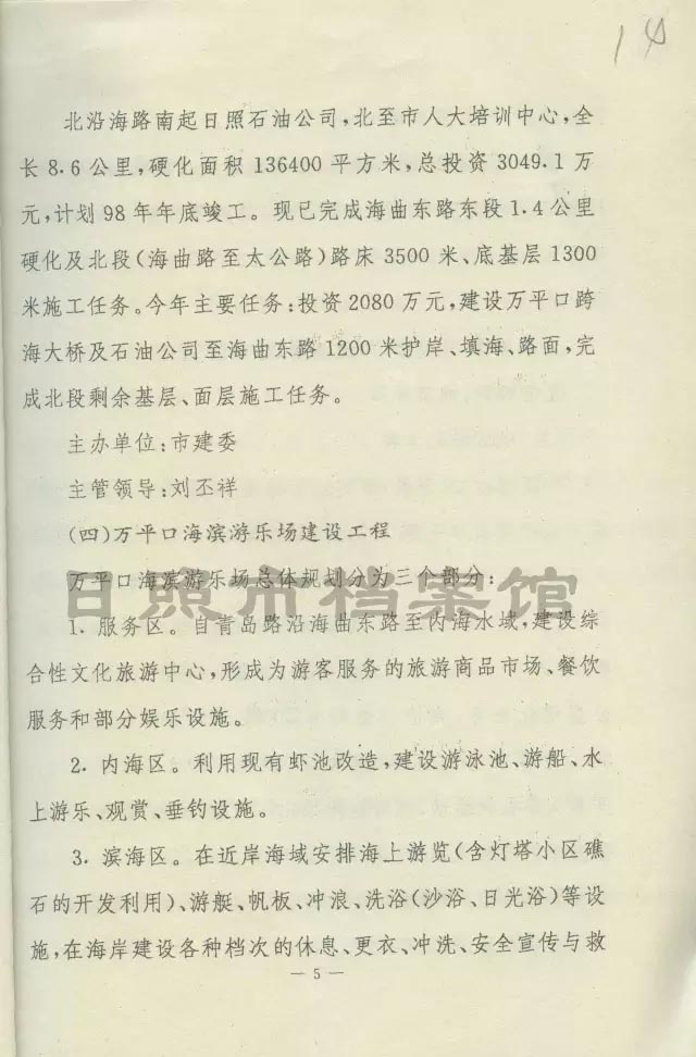 《日照市旅游局万平口海滨旅游区二期工程项目介绍》(1998年12月1日)