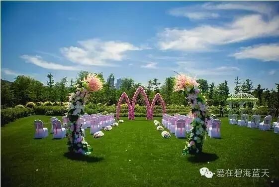 蓝天作证,大海为媒。娇艳的鲜花,如茵的草坪,跳跃的阳光,在悠扬的婚礼乐曲中,踏着红地毯款款走来,接受着亲朋最诚挚的祝福……办一场草坪婚礼,让爱情回归最纯净的自然。