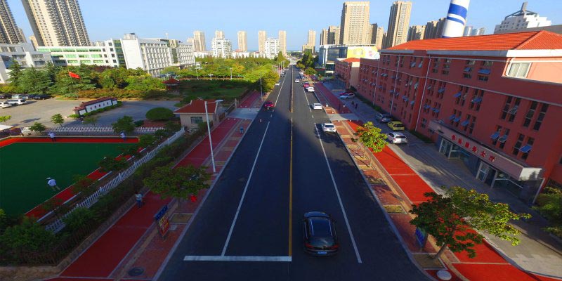 完成改造的胶南路,东侧是老年干部活动中心(日照市住建局)
