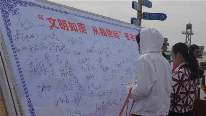 市民纷纷表示,旅游厕所不仅关乎日照旅游品质,更关乎日照城市形象,每一个市民都应当自觉践行文明旅游。外地游客表示,厕所事小,文明事大,文明旅游不仅是日照人民的迫切要求,更是全体中国人民的共同目标。活动当场签字人数近2000人,发放文明如厕倡议书1000余份。