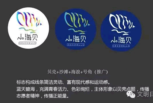 据介绍,“小海贝”标识的主体是“贝壳”形象,整体设计将贝壳、沙滩、海浪、号角四种元素巧妙融合,充满了青春活力;口号是“激情马拉松,阳光小海贝”,读来简洁凝练、朗朗上口,体现了“小海贝”的精神内涵。“小海贝”寓意“海洋宝贝”,突出海洋特色。“海贝”与英文“happy”谐音,表示志愿服务是一项“赠人玫瑰,手留余香”的善举,是一项快乐他人,幸福自己的行动;同时海贝里孕育着珍珠,象征马拉松的志愿服务者通过辛勤热情的付出,彰显自己珍珠般的心灵。