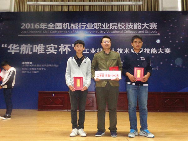 近日,“华航唯实杯”全国工业机器人技术应用技能大赛在山东潍坊落下帷幕,来自日照市技师学院的秦涛老师和周鹏、张景阳同学分别夺得中职学生组、师生组项目二等奖的优秀成绩。