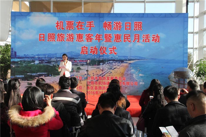 11月28日,“机票在手·畅游日照”旅游惠客年暨惠民月活动启动仪式在日照机场举办,日照市旅发委副主任赵志超出席仪式并致辞,各区县旅游局及我市部分旅行社、景区、酒店分管营销负责人参加了此次活动,万平口景区和华美酒店作为企业代表发言,“双惠”活动同步启动标志着我市旅游宣传营销开启新篇章。