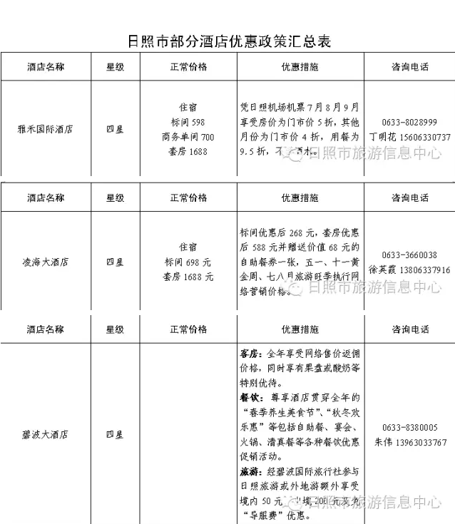 日照旅游惠客年活动以“机票在手·畅游日照”为主题,在2016年11月30日—2017年12月31日期间,游客凭到达日照机场的机票和身份证即可享受景区、酒店、餐饮的各种优惠活动。日照旅游惠民月活动以“畅游日照·共享发展”为主题,在2016年11月30日-12月31日,日照市本地市民凭身份证即可享受我市景区、酒店、餐饮的各种优惠活动。