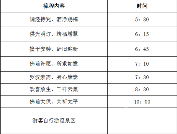 元月1日当天,早9:00之前,五莲山免门票开放,另外,光明寺为前来参加活动的善众们提供免费的斋饭。