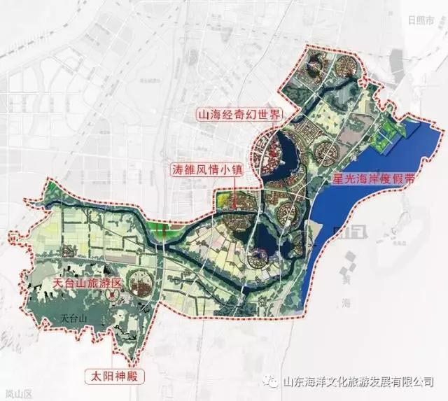 东方太阳城位于日照市南北主要发展轴线上,距日照市区16公里,是未来城市空间拓展的重要发展地区之一,是日照市城区和岚山城区之间的重要节点,也是日照港和岚山港之间的重要联系纽带。 东方太阳城以太阳文化为核心,建设成为一个特色城镇,一个新型社会,一个文旅综合体项目,将成为山东仙境海岸的重要龙头项目,3000公里仙境海岸地标性工程,日照产城融合的旅游地标项目,太阳文化的重要载体项目。 山海经奇幻世界 山海经奇幻世界是“中国首创山海经文化主题体验公园”,是中国完全自主知识产权的第五代主题乐园,具有影视拍摄、旅游休闲、虚拟现实、游戏互动等复合功能。公园总占地面积414亩,建筑面积7.78万平方米,以《山海经》为主题,结合先进的数字设备和文化创意建设奇幻公园、虚拟现实体验馆、室内大型游乐场、梦幻大街、梦幻剧场、水上乐园等设施,主要建设山海经博物馆、女娲补天体验馆、应龙滑水运动俱乐部、嫦娥奔月体验馆、神农百草园、音乐灯光激光秀等,同时配建旅客集散服务中心、停车场、旅游商业配套等基础设施。 天台山旅游区 天台山旅游区由天台山景区、太阳文化博览园、汤谷度假区三大功能区构成,周边分布太阳文化艺术小镇及太阳景观生态农业区。项目建设内容以太阳文化、《山海经》文化为创意背景,以山海格局为建设基础,内容重点打造包括祭日坛、星月坛、财神殿、神道秘境、东方琉璃殿等在内的多个旅游景点,同时配套建设包括精品酒店、游客服务中心、便民服务景站、生态停车场等。 太阳神殿 太阳神殿是天台山旅游区的核心吸引物,位于太阳文化博览园内。太阳神殿内,正东方以春的“生命之光”为主题,演绎荒芜与生命造就的太阳宗教殿堂;正南方以夏的“炎明之光”为主题,演绎星夜与白昼铸造的太阳哲学论坛会址;正西方以秋的“多彩之光”为主题,演绎单一与七彩创造的太阳艺术馆;正北方以冬的“幽寒之光”为主题,演绎寒冷与温暖塑造的太阳科技体验馆。 星光海岸带 星光海岸度假带位于现刘家湾赶海园景区区域,占地面积5平方公里,海岸线长9公里,主要包括刘家湾社区、小海社区、金沙社区三个小镇和阜鑫渔港观光区、金沙岛星光度假区、刘家湾休闲度假区、德兴渔业观光区四个功能区,重点打造提升刘家湾赶海园、金沙岛、水上乐园、四季海水浴场等景点。打造集亲子休闲、滨海度假、渔业体验为一体的旅游休闲带。 涛雒风情小镇 涛雒风情小镇规划占地面积1.13平方公里,跨南店河布局,项目拟建古镇核心服务区、滨水服务区、住宅配套区、旅客集散服务区和渔人码头等,主要建筑有文昌阁、翰林书院、国学讲堂、国学文化街、文化主题酒店、涛雒埠口等。 涛雒风情小镇将利用现状农田改造形成生态景观背景,结合南店河打造亲水空间,利用涛雒古镇的形质,融入现代功能,以文昌阁、涛雒渡口为引擎,开设文化街、翰林书院、百家祠堂等文化项目,打造以耕读文化为主体的复合功能旅游小镇。