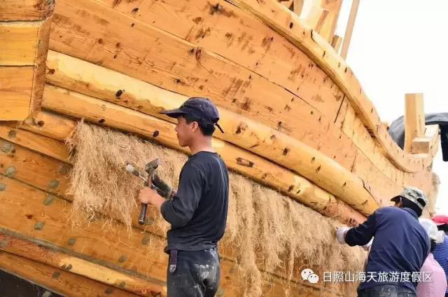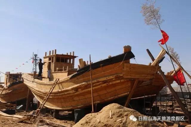渔港的西边有占地80亩的村办企业渔船修造厂,里面的老师傅们仍然在用传统的手法造木渔船。