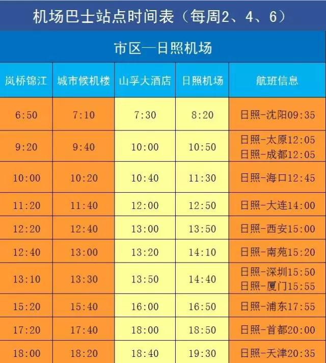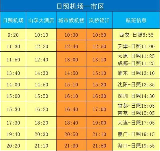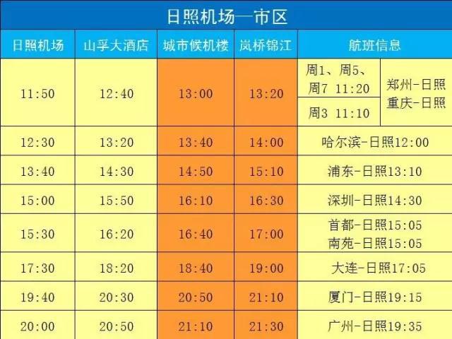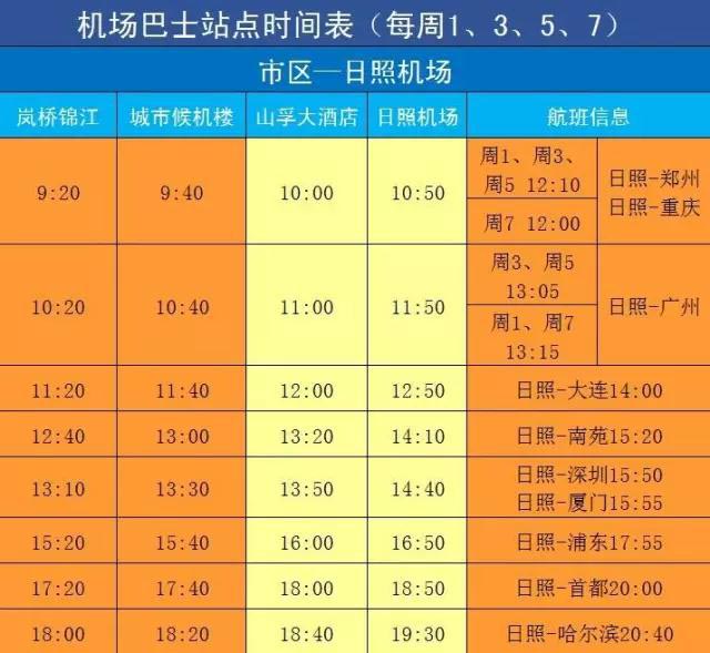 日照机场2016/2017年冬春航季巴士时刻表