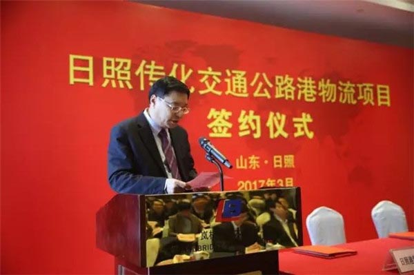 3月2日,浙江传化物流集团与日照港集团、日照交通发展集团在我市举行“日照传化交通公路港”物流项目签约仪式。市委副书记、市长齐家滨出席仪式并致辞,浙江传化物流集团执行总裁徐炎介绍项目有关情况,市政府秘书长黄秀芹主持。