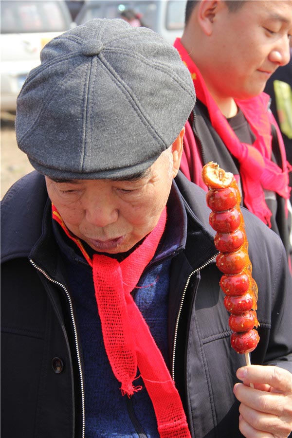 您看着老爷子吃的,就知道是大姨家的糖葫芦,好吃~