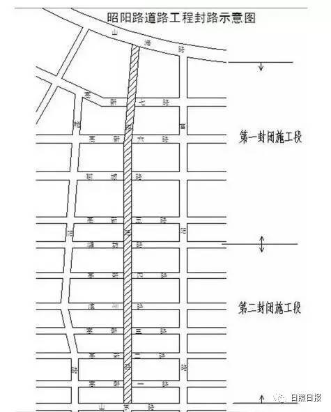 4月6日,日照市公安局交通警察支队、日照高新区建设局、日照高投市政工程有限公司联合发布公告称:2017年4月7日至2017年11月30日,对昭阳路(山东路-山海路)进行分段封闭施工。